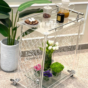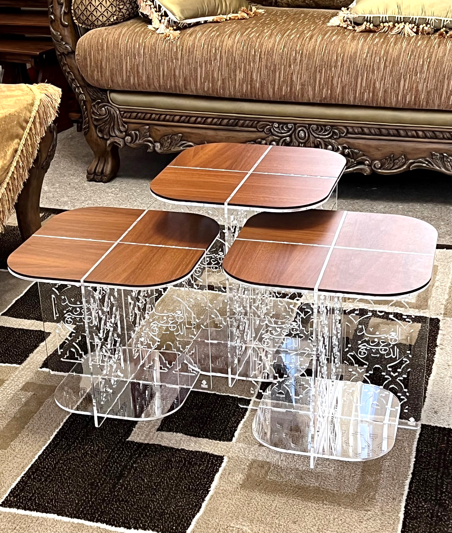 طقم طاولات (عدد 3) مصنوع من أكريلك وخشب قياس (30*30 سم) ارتفاعات (45,40,35 سم) مع أمكانية حفر الأسماء على القطع