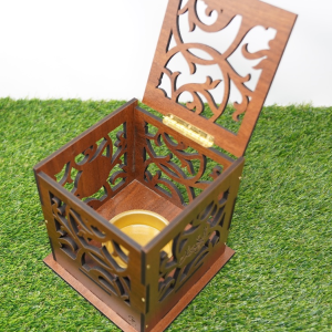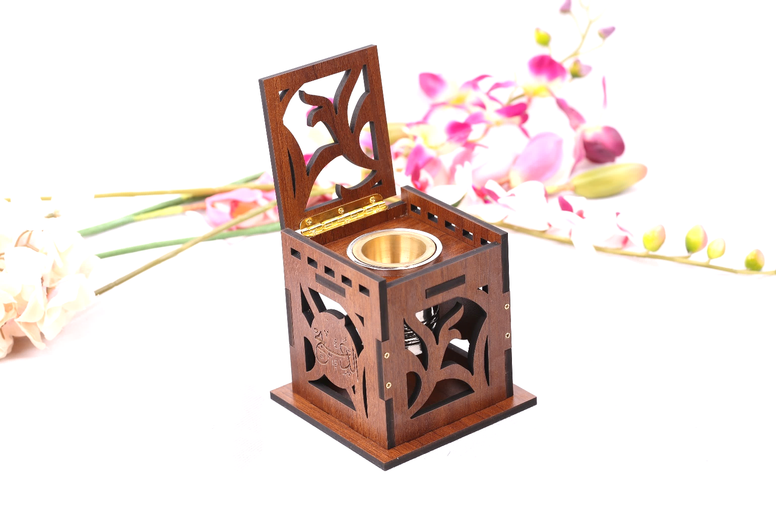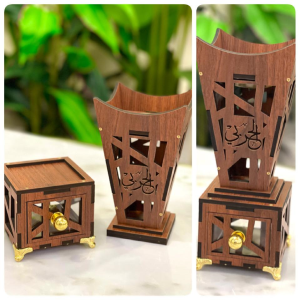 مبخر خشب طول 10 عرض 10 ارتفاع 13 سم . مع حفر الأسماء على الجهتين