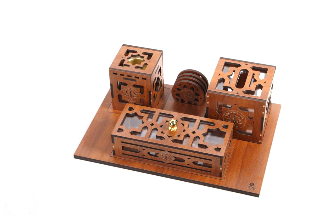 صينية مبخر طول 42 عرض 29 سم تحتوي على مبخر 10*10ارتفاع 13 سم و علبة حلو 25*10 سم وقواعد اكواب