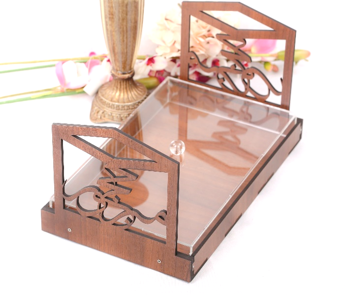 صينية خشب مع صندوق اكريلك طول 40 سم, عرض 25 سم ارتفاع 6سم