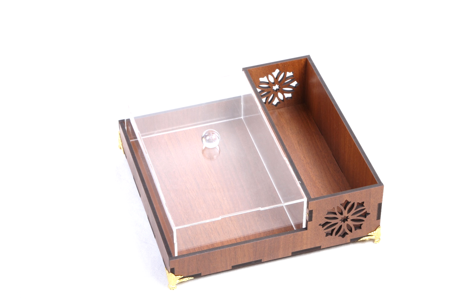 صندوق خشب مع علبة اكريلك طول 28 سم, عرض 26سم, ارتفاع 8,5 سم .