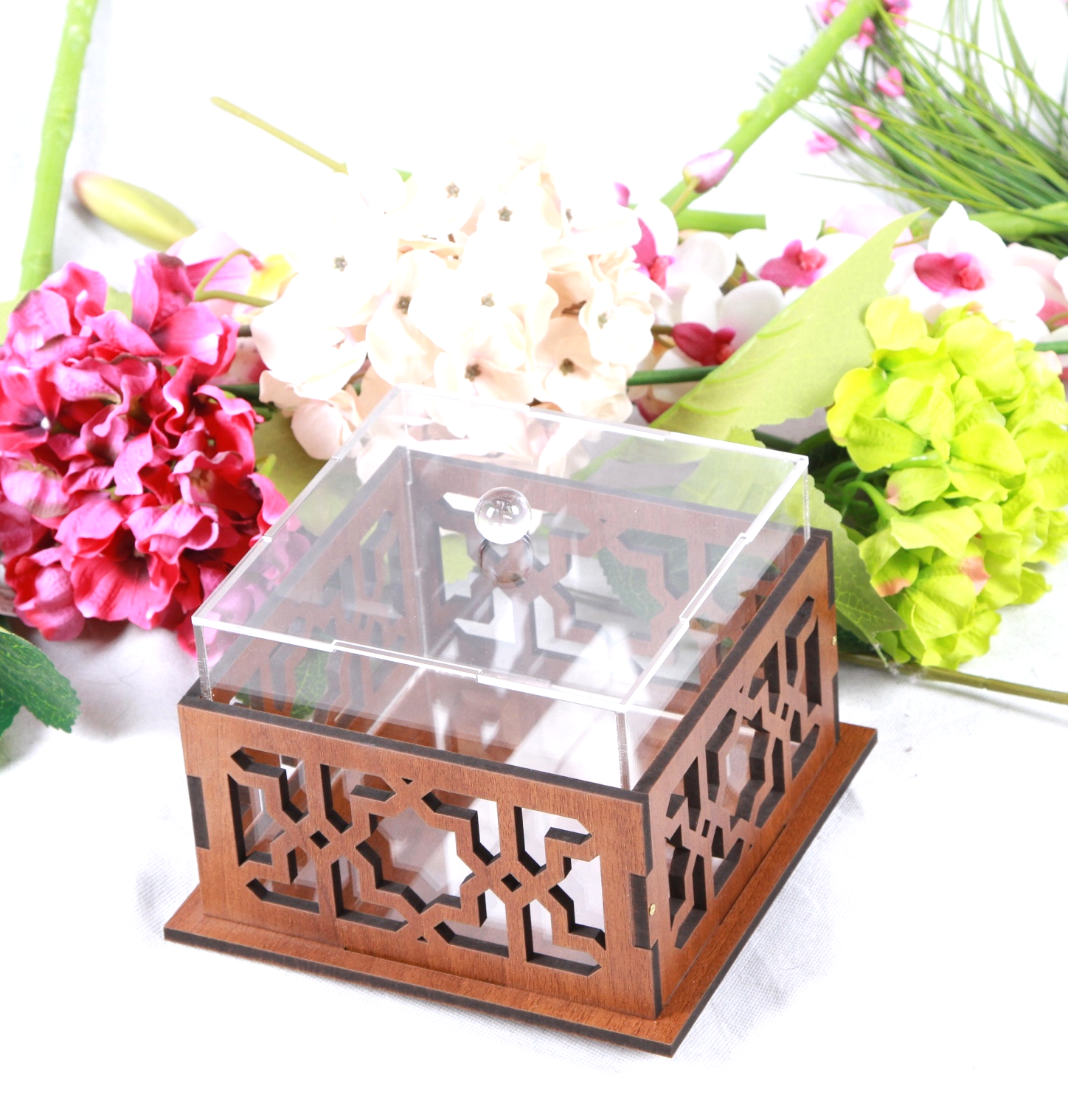 صندوق خشب وأكريليك طول 19 سم, عرض 19 سم, ارتفاع 13 سم .