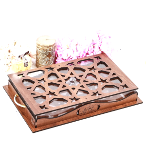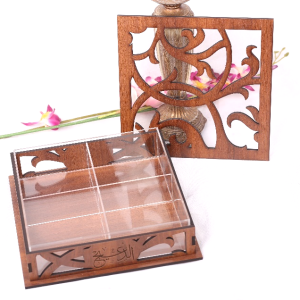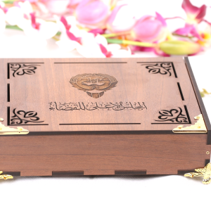 صندوق خشب تصميم دلة طول 41 سم ، عرض 30 سم ، ارتفاع 49 سم مع امكانية حفر الأسماء والعبارات.