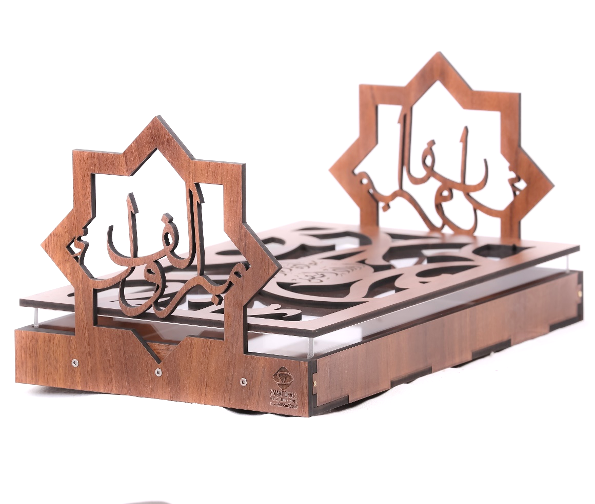 صينية خشب مع صندوق اكريلك طول 40 سم, عرض 25 سم ارتفاع 6سم