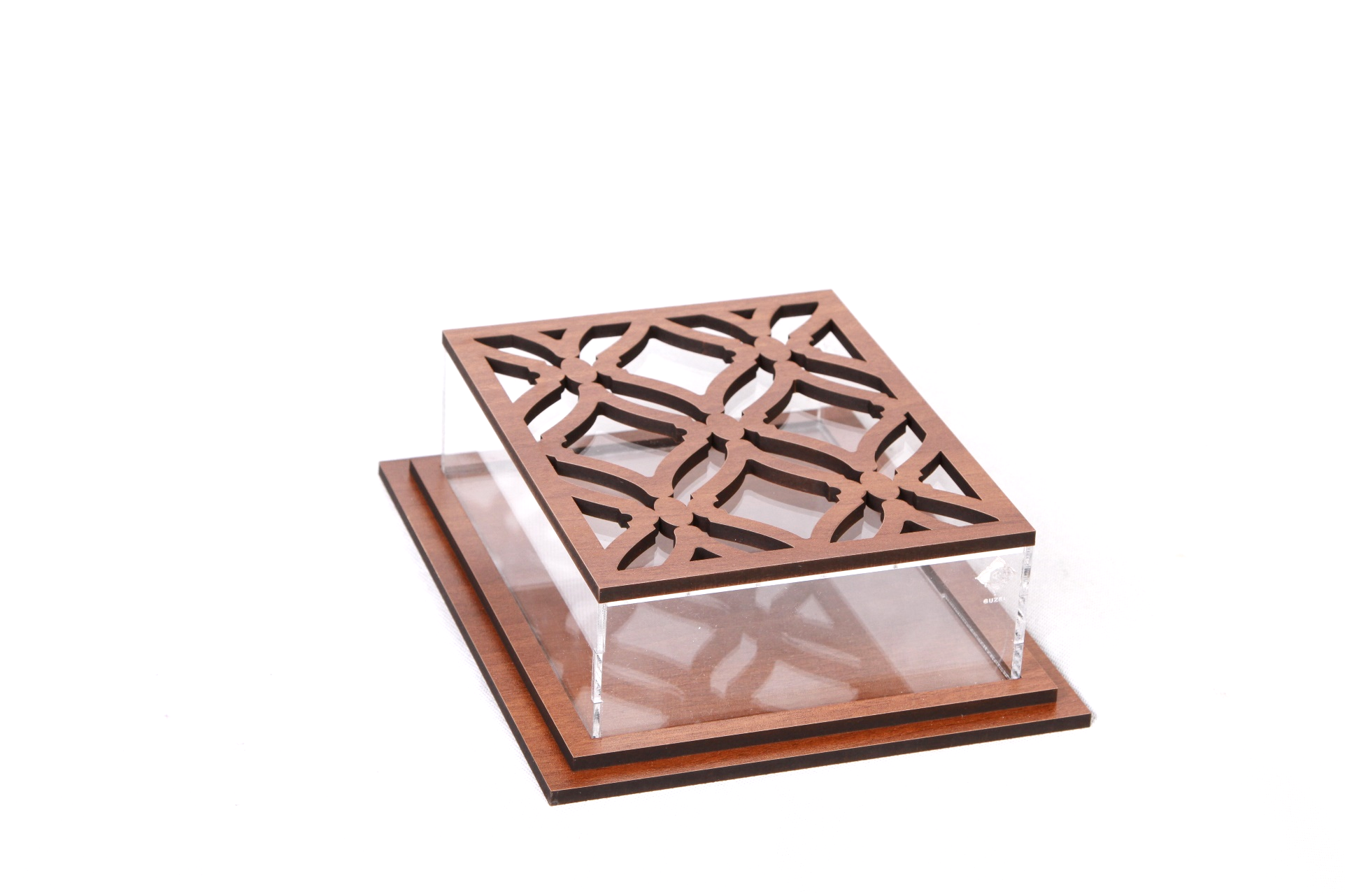 صندوق خشب وأكريليك طول 20 سم ، عرض 16 سم ، ارتفاع 6 سم .