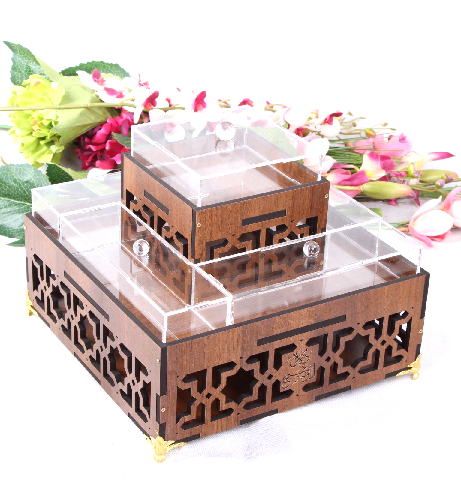 صندوق حلو قياس) 30*30*30 (يتضمن 4 علب للحلو قياس العلب 22*7 ارتفاع 5 سم مع أمكانية حفر الأسماء
