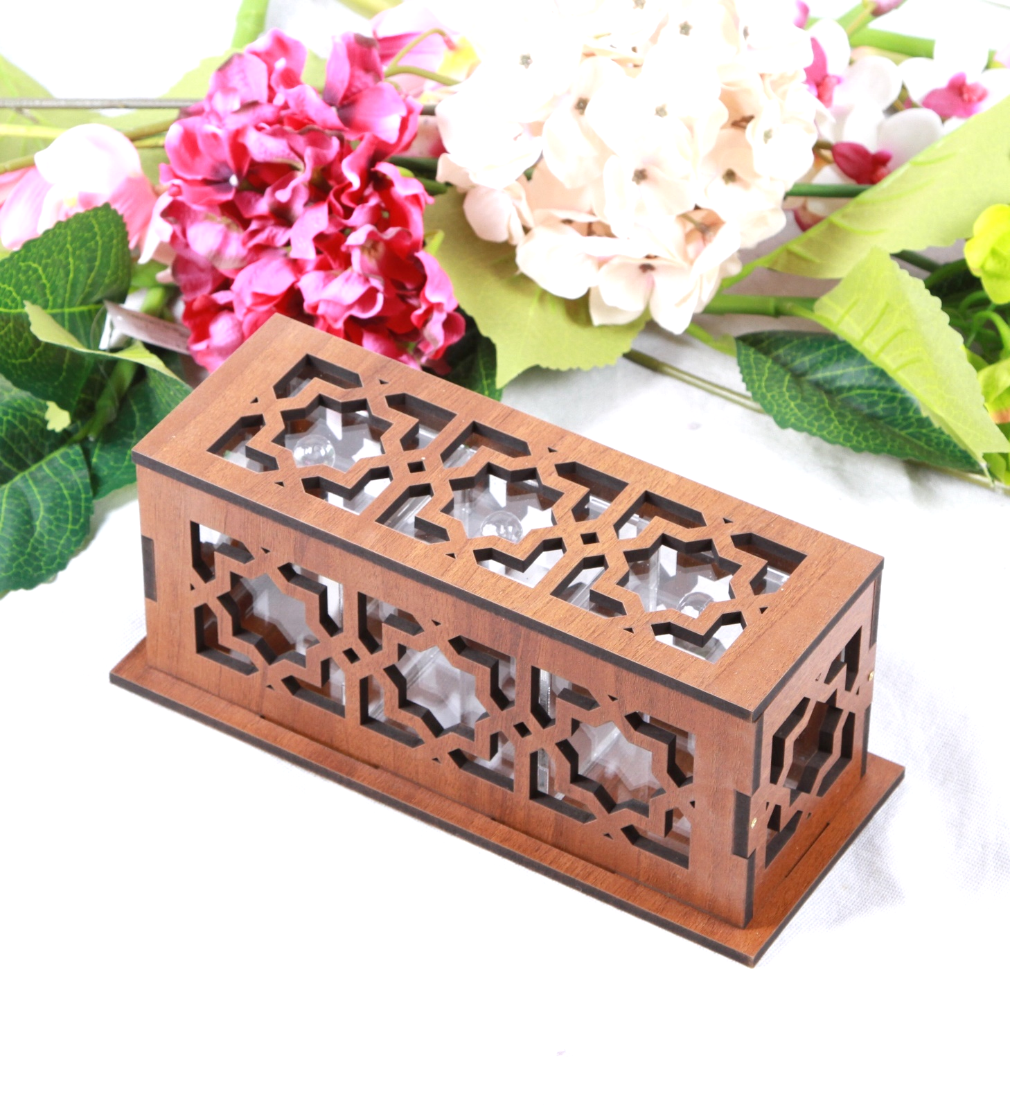 . علبة كلينكس خشب ومن الداخل أكريلك الطول 13 سم ، عرض 13 سم ، ارتفاع 13 سم .