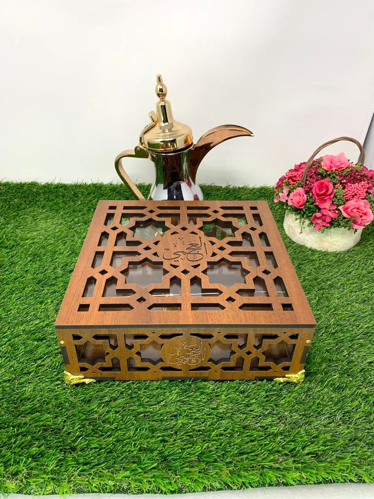 صندوق خشب و أكريلك طول 25 سم عرض 25 سم الارتفاع 8 سم مع أمكانية حفر الأسماء
