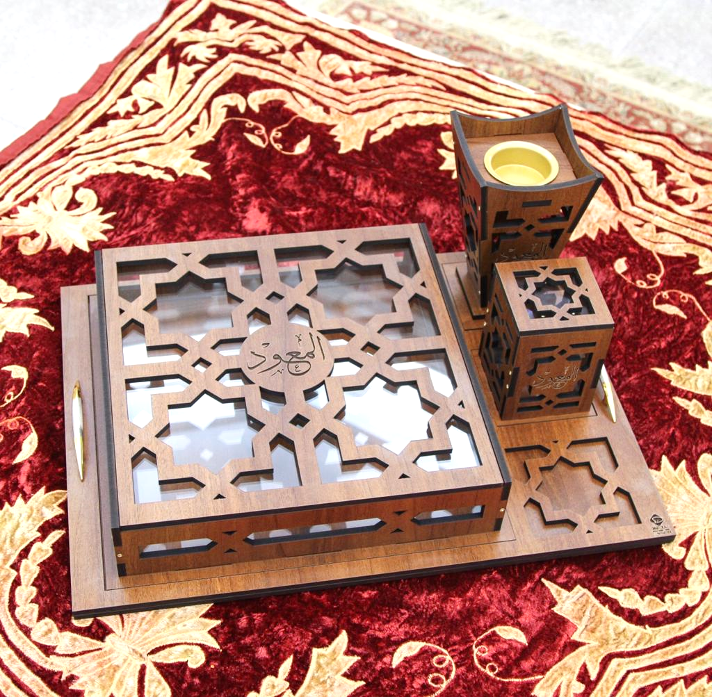 صينية مبخر قياس (48 سم *35 سم) مع بكس حلو وبكس بخور بوكس الحلو قياس (30 سم * 30 سم ارتفاع 6 سم)