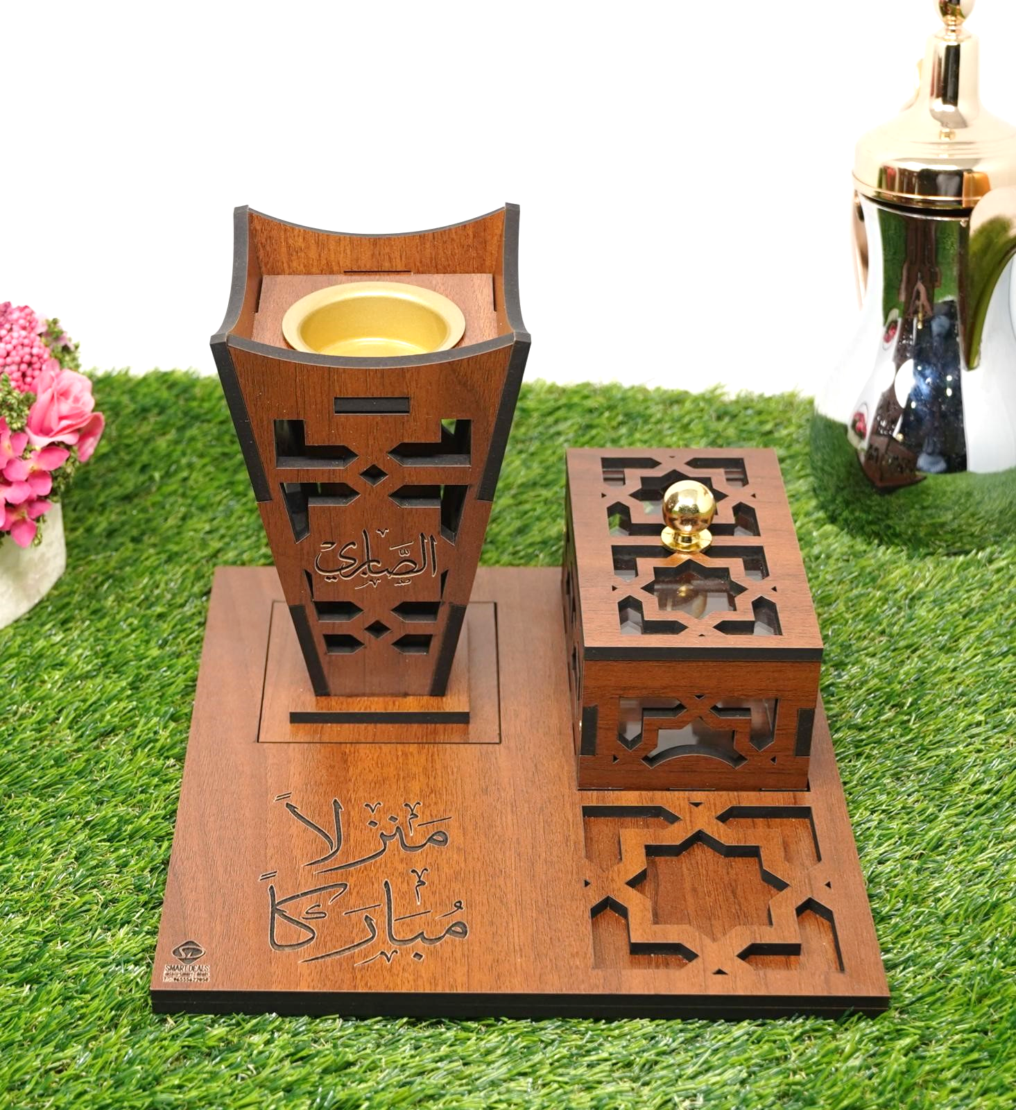 صينية مبخر خشب (طول 24 سم عرض 24 سم) ارتفاع المبخر 18سم مع أمكانية حفر الأسماء على القطع