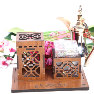 صينية خشب تحتوي على مبخر وبوكس خشب، قياس الصينية 31سم طول ،28 سم عرض ، ارتفاع المبخر 18 سم . قياسات البوكس (طول 27 سم,عرض 11 سم ، ارتفاع 9سم)
