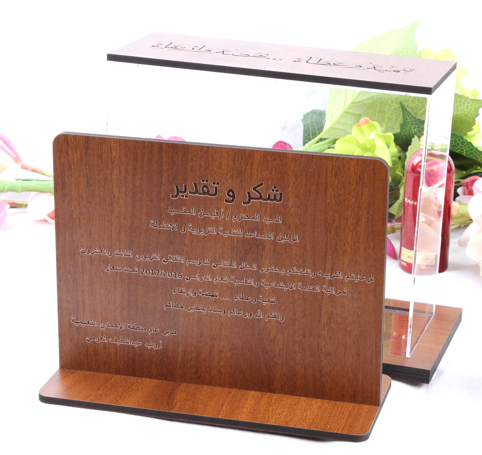 درع خشب مع صندوق أكريلك ( طول 26 سم عرض 12 سم ارتفاع 22 سم )