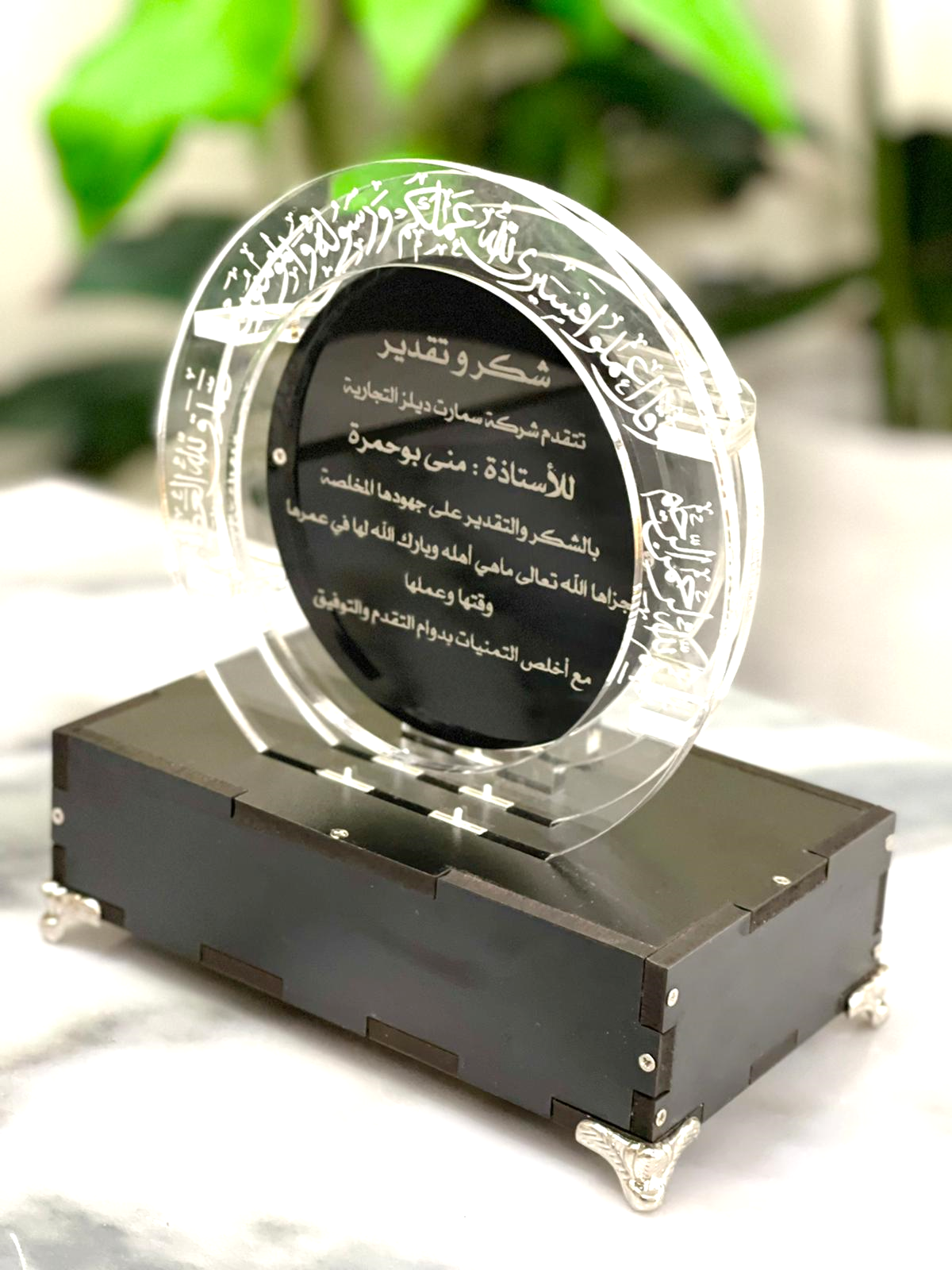 درع خشب وأكريليك ( طول 19سم عرض 10 سم ارتفاع 20سم )